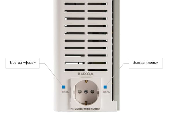 | Стабилизатор TEPLOCOM INVERTOR — фазоинверторный, вам не нужно проверять расположение фазы и нуля. На выходе стабилизатора фаза и ноль всегда на месте независимо от фазировки самого стабилизатора. | |